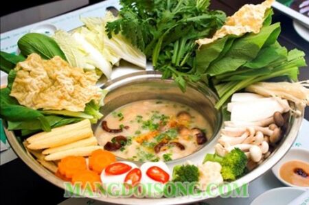 Lẩu chao bốn mùa trông thật hấp dẫn với các loại rau xanh kết hợp với nấm và đặc biệt là hương vị của chao tạo ra sức hấp dẫn vô cùng đối với người thưởng thức. Vị béo của chao và nước cốt dừa thật hài hòa tạo ra món…